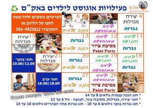 כל חודש אוגוסט מלא בפעילויות לילדים בני 6 ועד